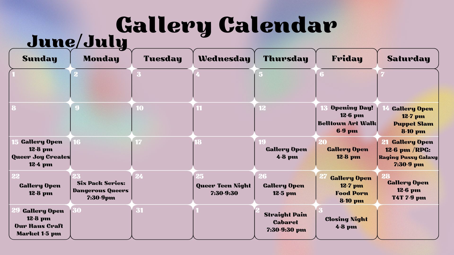 All queer artists! However other than that, artists come from a broad range of identities, backgrounds, and artistic mediums. Ages of artists range from under 19 to over 45!